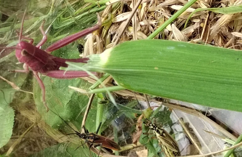 »To je kečer, posebna nežna mreža, s katero v obliki osmic prečešeš travnik in poloviš kobilice, mravlje, hroščke in pajke. Kdo bo poskusil?«