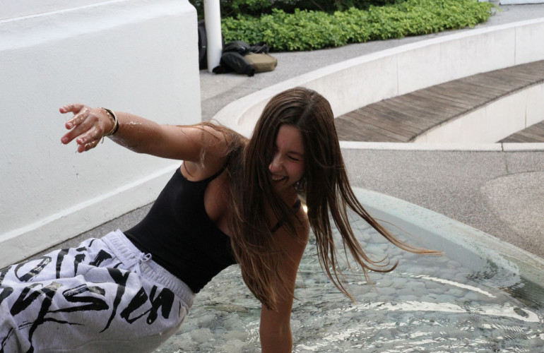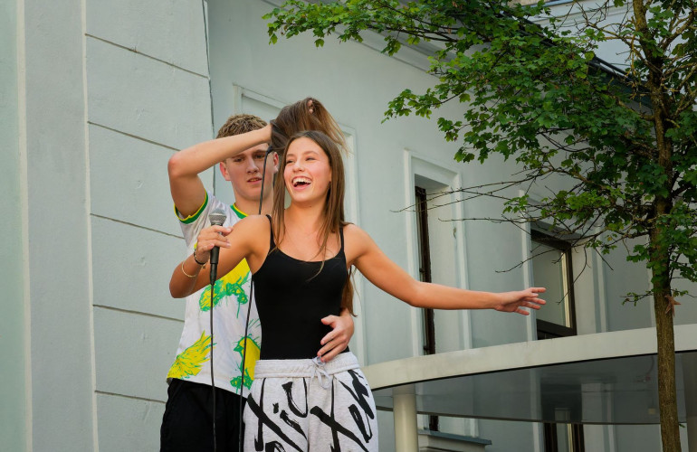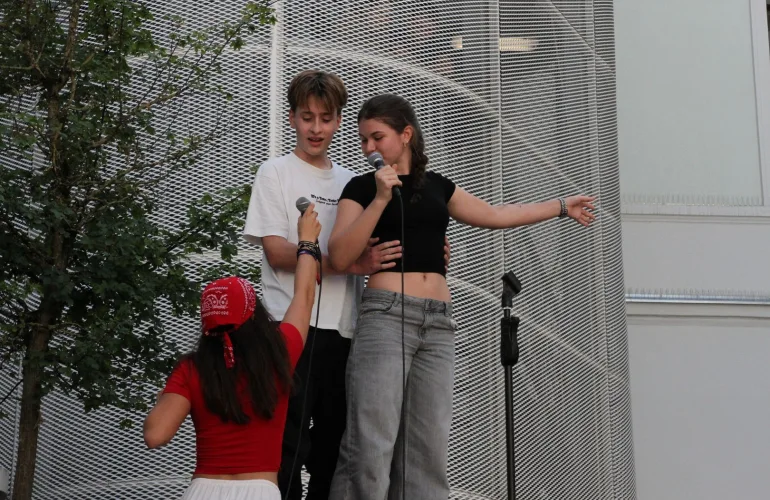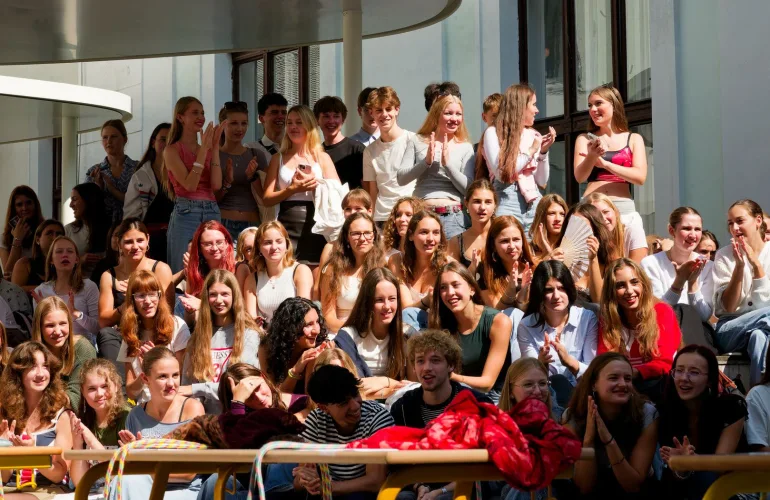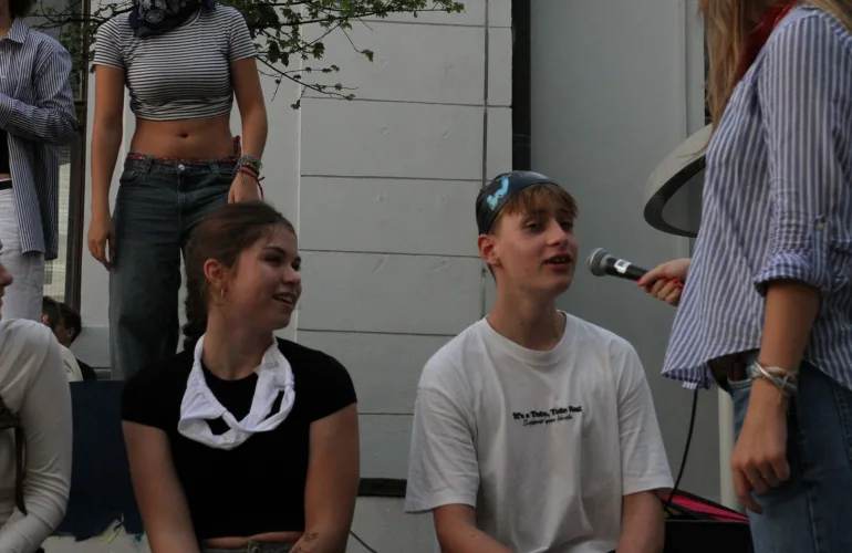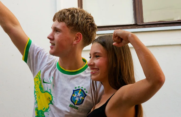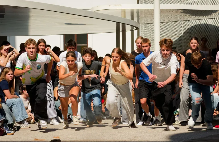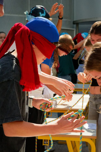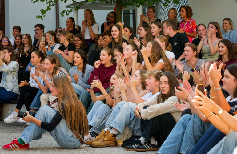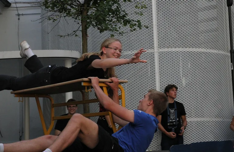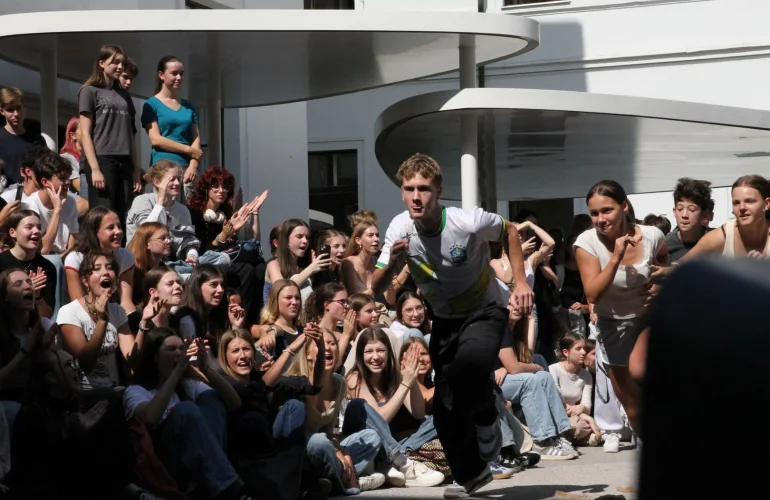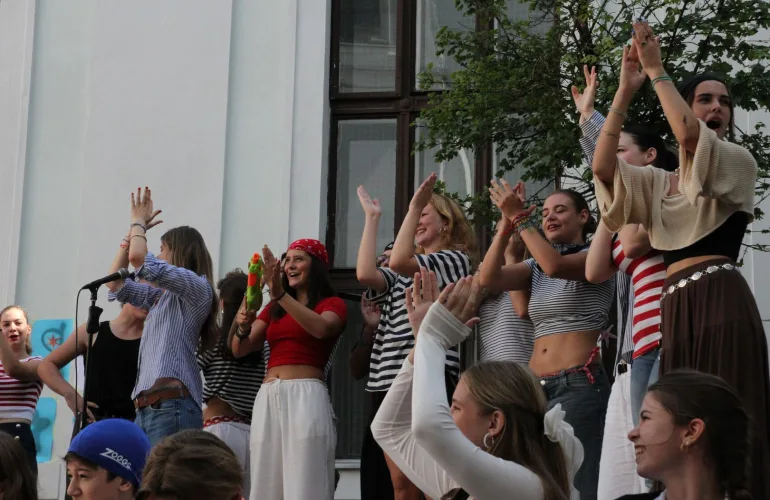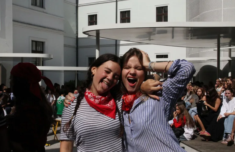 Dijakinje 4.c, 4.d, 4.e, 4.f in 4.g razreda smo pripravile zabaven program in izbrale še poletno temo – mornarstvo – v okviru katere smo si zamislile šest izzivov, pri katerih sta sodelovala predstavnika vsakega razreda prvih letnikov.