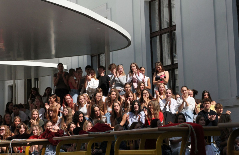 Prvošolci so pokazali, da se znajo spoprijeti z izzivi in se zabavati. Atrij je preplavil poljanski duh, predvsem pa v vročem popoldnevu tudi v spominu na minulo poletje veliko vode.