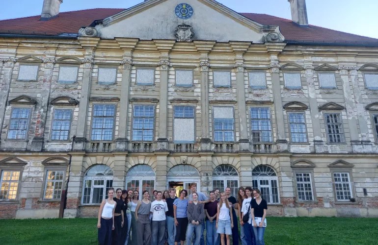 Vstali smo v mraku in se tudi vrnili v mraku, vmes pa smo si ogledali mnoge odlične umetnine, ki jih lahko prepoznate tudi na fotografijah – rimsko nekropolo v Šempetru, rokokojsko romarsko cerkev v Šmarju, Mitrej - svetišče boga mitre v Ptuju in Slovenski Versailles – zapuščen baročni dvorec Dornava.