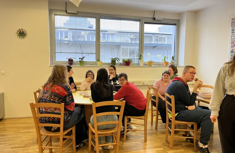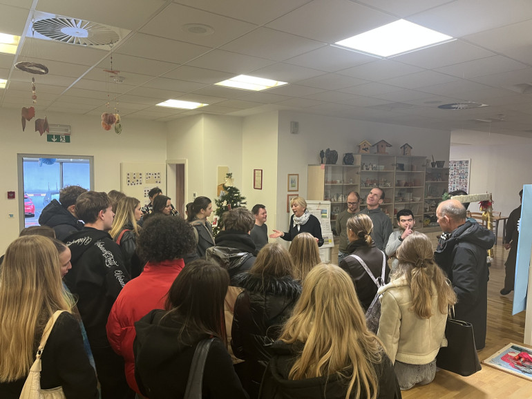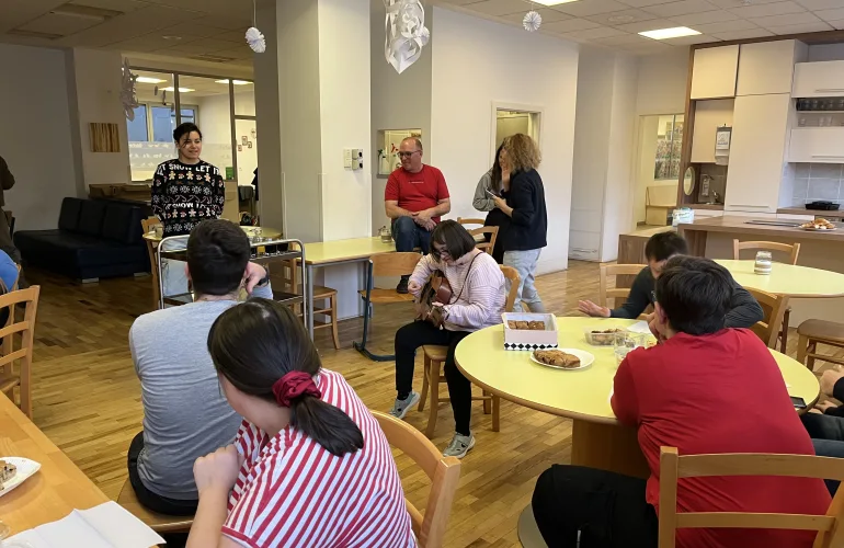 Na predbožični dan smo se tako družili z odraslimi z motnjami v duševnem razvoju v CUDV Draga, ki je za njih kot nekakšna služba. Razkazali so nam prostore in pokazali delavnice, ki jih imajo vsak dan. Sprejeli so nas z velikimi nasmehi in se z nami z veseljem podružili. Ob božični glasbi in piškotih, ki smo jim jih prinesli, smo se pogovarjali in celo doživeli koncert. Hitro smo ugotovili, da imamo v našem razredu in v njihovi druščini dva raperja, ki sta nam na licu mesta pripravila skupno pesem. Po eni uri smeha in plesa smo se v božinem duhu poslovili, vrata pa so ostala odprta vsakemu, ki si jih upa prestopiti, kot so nam sami povedali.