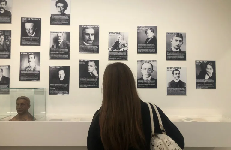 Pohiteli smo naprej do Leopoldsmuseuma. Vstopili smo v večnadstropno stavbo muzeja in se sprehodili čez razstavo Wien 1900 – vstop v moderno. Razstava predstavlja umetniška dela iz obdobja moderne in secesije okoli leta 1900. Med množico različnih umetnin se mi je v spomin najbolj vtisnila slika Gustava Klimta z naslovom Smrt in življenje. Ko sem jo opazovala, sem razmišljala o tem, kaj slikar z njo sporoča. Sama sem v sliki videla smrt, ki prihaja po žive, tako mlade kot stare. Najbolj mi je bil všeč barvni kontrast med upodobitvijo smrti ter življenja. Smrt je slikar upodobil s hladnimi, temnimi barvami, medtem ko je življenje naslikal s svetlimi, toplimi barvami. Poleg slik smo si lahko ogledali razstavljeno pohištvo iz obdobja moderne. Ta del razstave me je res popeljal v takratni čas, saj sem spoznala, kako je umetnost vplivala na vsakdanje življenje.