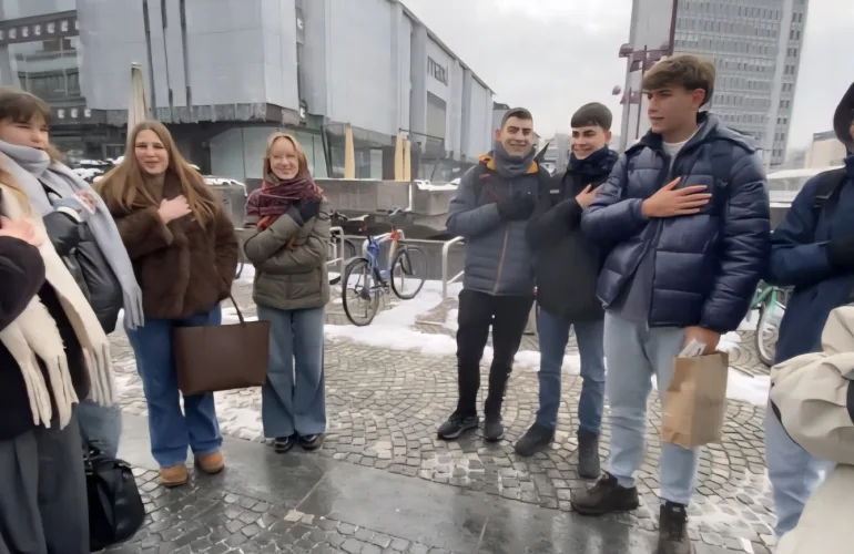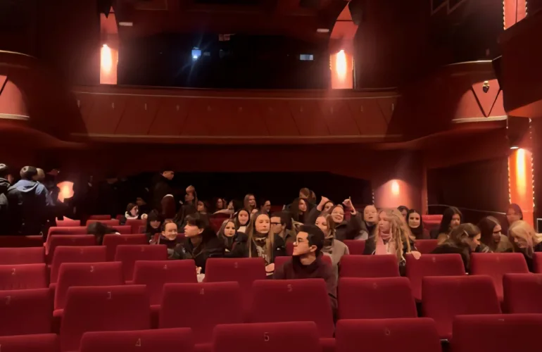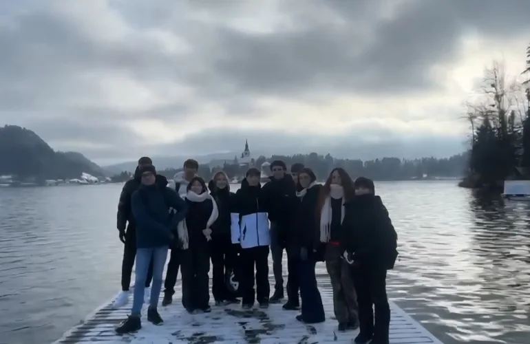V petek smo učenci 3.c in naše družine postlali postelje, posesali domove ter pripravili sestavine za spoznavanje ob družinskem kosilu za naslednji dan, saj je v soboto opoldne, 10.1.2026, napočil prihod naših boljših polovic. S plakati v rokah, novimi prijateljskimi zapestnicami v žepih ter prijetnim vznemirjenjem v srčkih smo naše španske partnerje za izmenjavo pričakali pred Gimnazijo Poljane. Stisnili smo jih v objem ter jih odvedli do ogretih avtov, da kulturni šok zaradi drugačnega podnebja ne bi bil prevelik. Lociranje njihovega novega doma res ni bila nobena težava, saj je vse hiše zaznamoval vonj po slastnem družinskem kosilu. Po jedači je nastopil čas za ogled lučk ter za družabni večer ob toplem napitku.