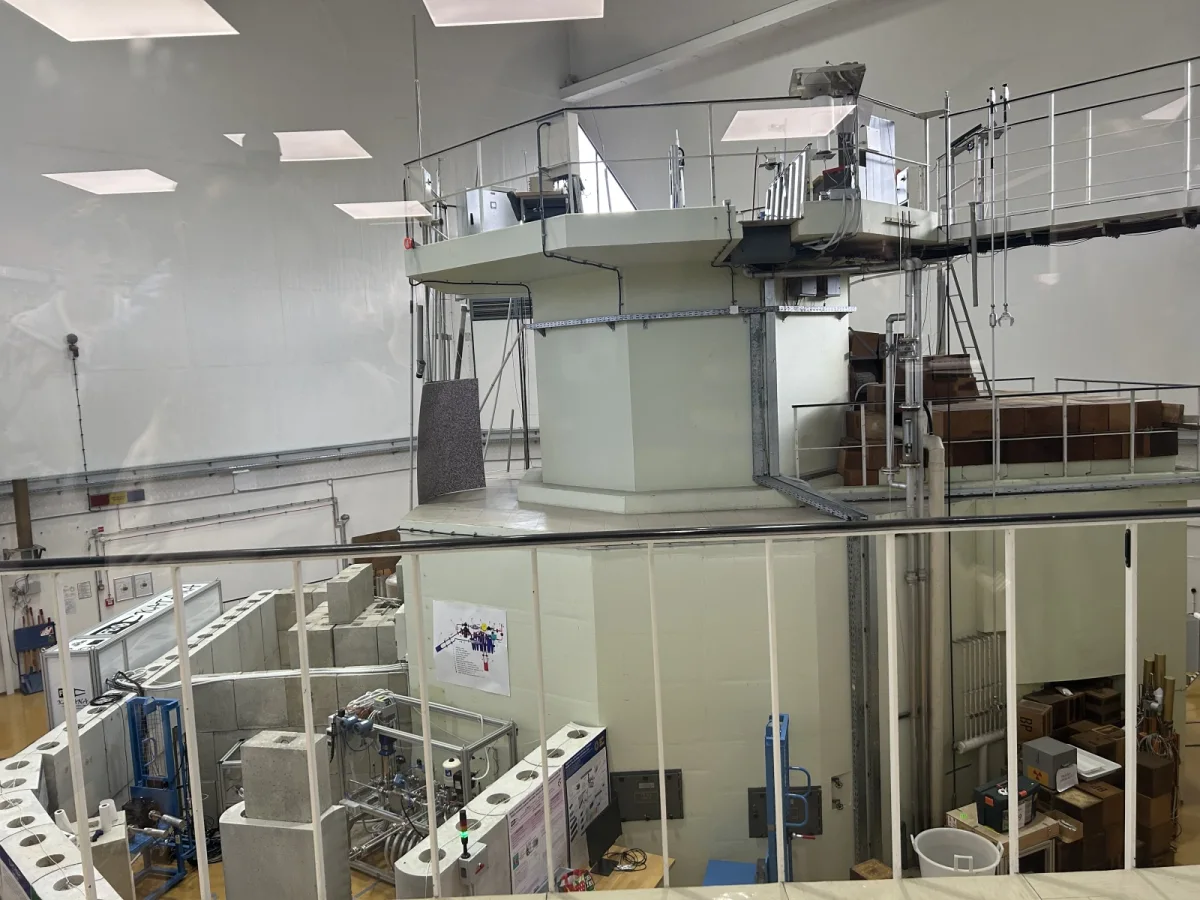 Prva fotografija: Pogled na prostor z reaktorjem iz komandne sobe, foto Sara Uderman