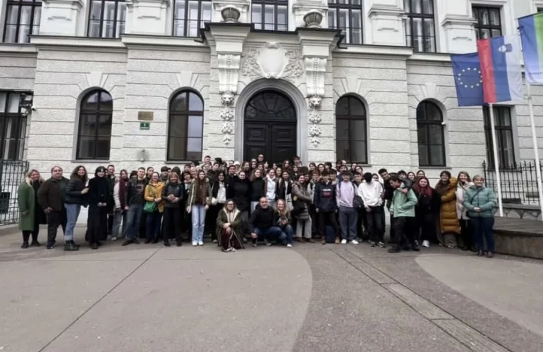 Torek smo otvorili s predstavitvami o naši zgodovini, Plečnikovi Ljubljani, slovenskem športu in delovanju pogumnih Slovenk doma ter po svetu. Dopoldne so Španci med hospitacijami izkusili poljanski vsakdan, po zasluženem premoru pa smo napolnili dvorano Kinodvora, kjer smo si skupaj s 3.D in vzporedno gostujočo špansko skupino ogledali dokumentarni film Novi sošolci, medtem pa kakšno kitico tudi zadremali. Zvečer smo se razkropili vsak po svoje, odšli na večerno druženje ob raznoraznih razvedrilih in dobri hrani (tistega dne so španska srca osvojili legendarni čevapčiči, klasika).