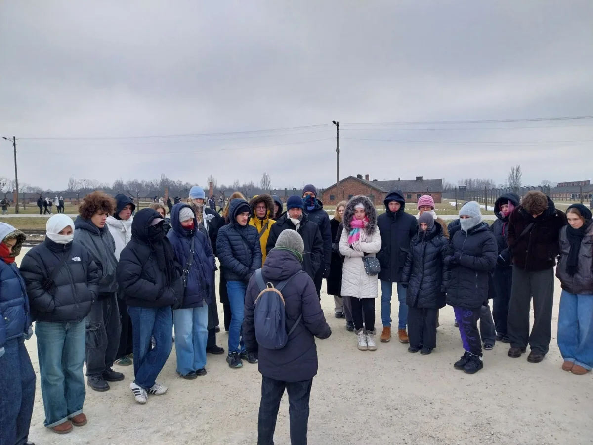 NazajV petek 30. 1. 2026 smo se četrti letniki odpravili na ekskurzijo v Auschwitz, ki jo vsako leto organizira profesor Miha Pohar. Prvi dan ekskurzije je zapolnila avtobusna vožnja, ki se je začela ob sedmih zjutraj in ki jo je večina preživela vsak s svojim učbenikom v naročju. Kratek postanek za kosilo smo naredili v Bratislavi, nato pa šele zvečer prispeli v Krakow, kjer smo nemudoma zdrseli in popadali po nesoljenih poljskih pločnikih. Hostel, v katerem smo spali, je bil opremljen s starinskim pohištvom in črno-belimi fotografijami jazzovskih glasbenikov in zvezd tridesetih let 20. stoletja. V njem sem se počutila, kot da sem že stopila v preteklost. Čeprav je bila že noč, smo se sprehodili po mestu, ki je bilo še kar okrašeno z božičnimi lučkami in nadvse pravljično ter prikupno.