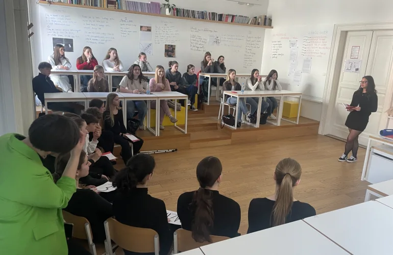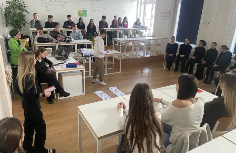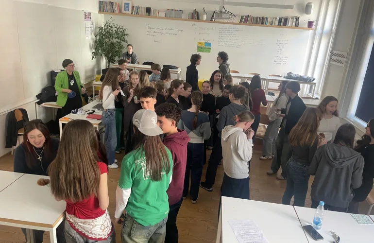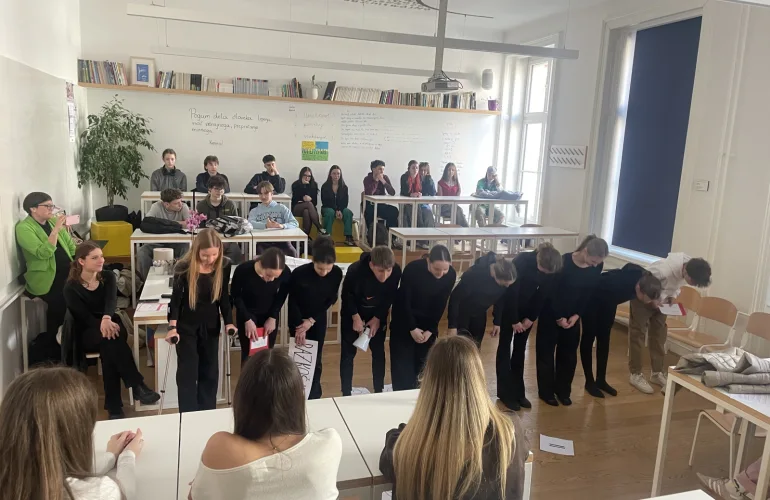 NazajNa gregorjevo smo na naši šoli, in sicer pri uri slovenščine v 1.G, gostili dvanajst devetošolcev z OŠ Poljane pod mentorstvom učiteljice slovenščine Tatjane Rupnik Hladnik. V letu poezije Srečka Kosovela ob 100. obletnici njegove smrti so med nas na prav poseben način prinesli njegovega živega duha.