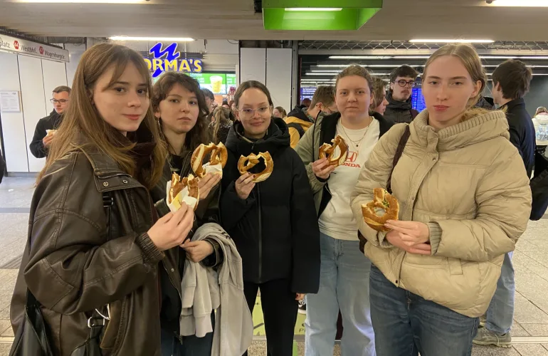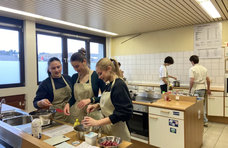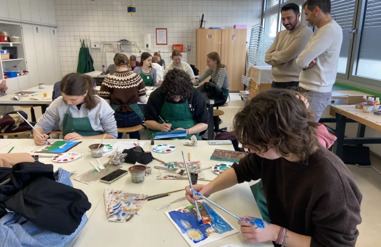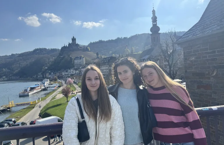 NazajNa izmenjavo smo se dijaki 3. G odpravili v zadnjem tednu marca. Veselili smo se nove izkušnje, saj večina od nas še nikoli ni bila na šolski izmenjavi in nismo točno vedeli, kaj pričakovati. Ob prihodu v majhno nemško mesto Mayen so nas pričakali naši nemški pari in njihove družine, pri katerih smo bivali ves teden. Bivanje pri družinah je bila zelo zanimiva izkušnja, saj smo lahko od blizu spoznali njihov vsakdan, njihove navade in način življenja. Veliko časa smo preživeli skupaj – ob večerjah, pogovorih ali skupnih dejavnostih po šoli – in prav to nam je omogočilo, da smo se bolje spoznali ter spletli nova prijateljstva. Obiskali smo tudi njihovo šolo, kjer smo se udeležili nekaterih ur pouka in spoznali, kako poteka šolanje v Nemčiji. Poleg tega so za nas pripravili različne dejavnosti in delavnice. Med drugim smo se preizkusili v kuhanju, kjer smo skupaj pripravljali jedi, ter v ustvarjalnih dejavnostih, kot je slikanje. Takšne dejavnosti so bile zelo zabavne, saj smo lahko sodelovali z nemškimi dijaki in se ob tem tudi veliko pogovarjali v tujem jeziku.