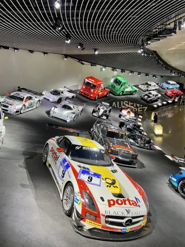 Dirkalna vozila v Mercedes Benz muzeju v Stuttgartu