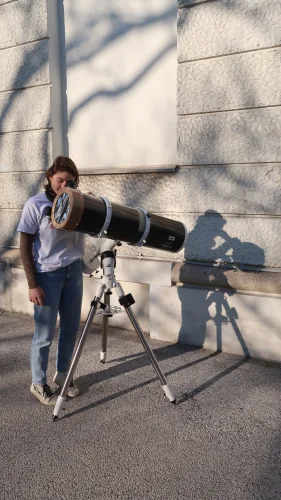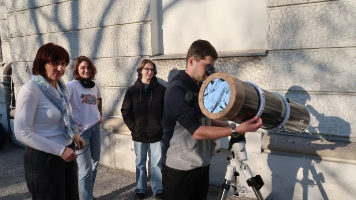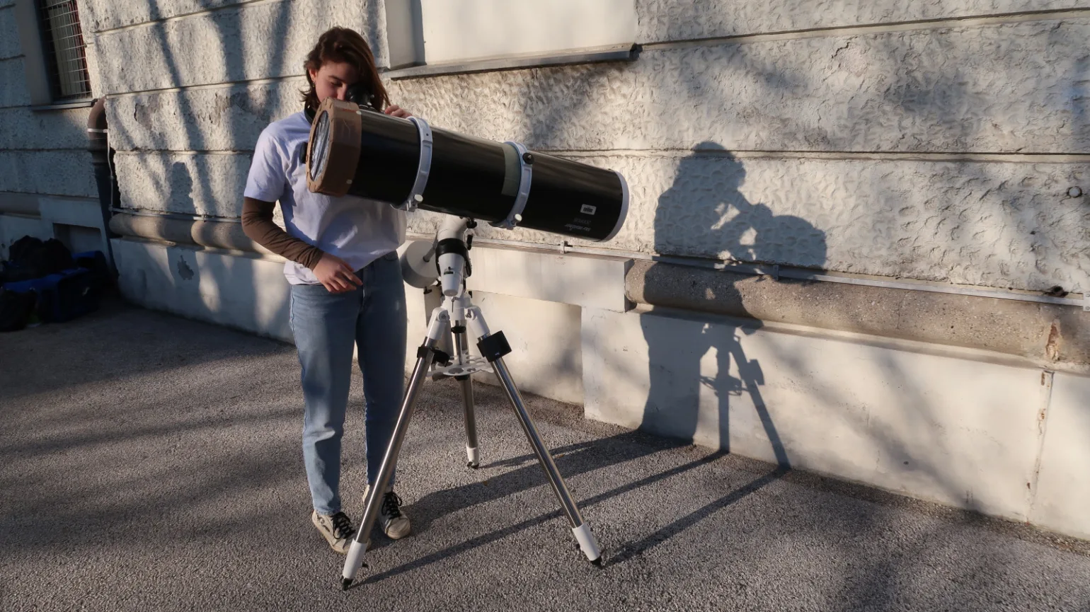 Srebrna Katja Šimenc med opazovanjem sončevih peg. (Foto. T. Pintar)