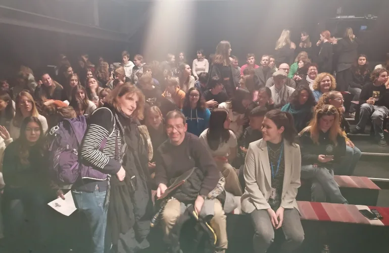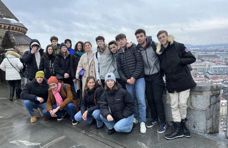 V ponedeljek,16.1.2023, je Ljubljano prekrila snežna odeja in človek bi pomislil, da naznanja nekaj velikega in lepega. Tako je okoli enih pred Gimnazijo Poljane pripeljal avtobus in občutek smo imeli, kot da se je ustavil čas. Leteče kepe snega so obstale v zraku in vsi smo se z iskricami v očeh spogledali: "Tukaj so!". Sledilo je prvo srečanje, malce nerodno anglo-slo-francosko kramljanje in sprejem šolskega orkestra v dvorani.