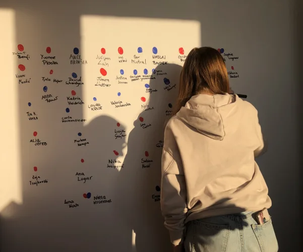 Na predzadnji večer smo skupaj s profesorji in našimi partnerji v šoli prej prazno steno zaznamovali s svojimi prstnimi odtisi in imeni. Prav naša izmenjava je bila namreč za Bohumčane prva, njihova želja pa je, da bi celotno steno v prihodnosti zapolnili z odtisi vseh, ki bodo sodelovali v izmenjavah.