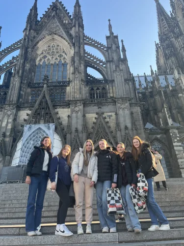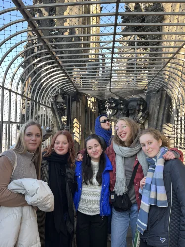 So viele Treppen?! Obiskali smo Köln in najprej vstopili v opevano katedralo, ki nas je očarala s silno mogočnostjo gotske arhitekture in delikatnimi vitraji, žarečimi v marčevskem soncu. Prehodili smo nič koliko stopnic, da smo prispeli na vrh in se ozrli na milijonski Köln.