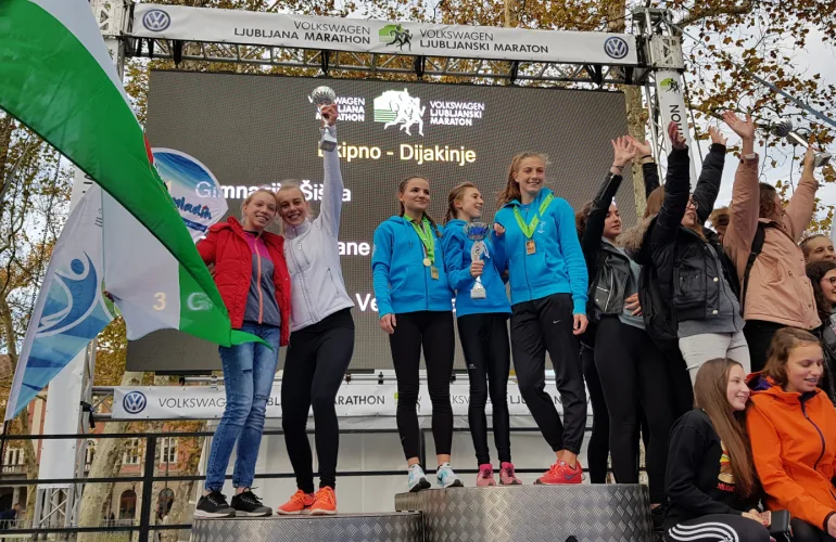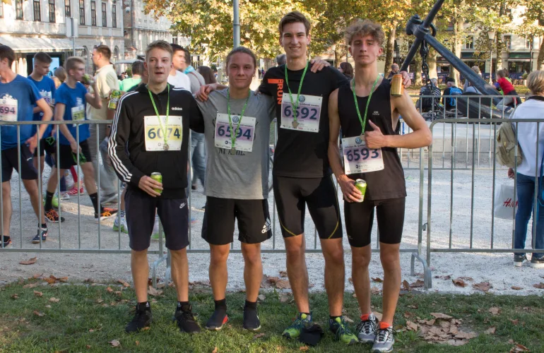 NazajZa nami je 27. Ljubljanski maraton. Prav letos je naša šola v vseh 25 letih organiziranega sodelovanja doslej presegla vse rekorde. Udeležilo se ga je največje število naših dijakinj in dijakov, naša Gimnazija Poljane pa je imela tudi najštevilčnejšo ekipo med vsemi srednjimi in tudi osnovnimi šolami v Ljubljani in je zato prejela posebno nagrado, ki so jo letos organizatorji podelili prvič.