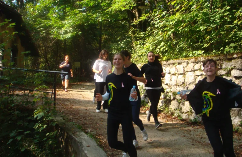 Namen prireditve je bilo osveščanje o najpogostejšem raku pri ženskah - raku dojk in o tem, da z redno telesno aktivnostjo, primerno prehrano in vzdrževanjem telesne teže ohranjamo in skrbimo za svoje zdravje. Izkazalo se je, da naša dekleta zelo rada pomagajo in da se zavedajo problematike raka dojk. Ta humanitarna prireditev se je na Poljanah res dobro prijela; kot edina šola smo se je organizirano udeleževali vseh 10 let. Število naših dijakinj, ki so želele sodelovati in pomagati, je bilo vsako leto večje. Prav na zadnjem 10. Teku in hoji za upanje smo presegli vse rekorde; bilo nas je 115 (dobra petina vseh udeležencev) in bili smo najbolj vesela in najštevilčnejša organizirana skupina.