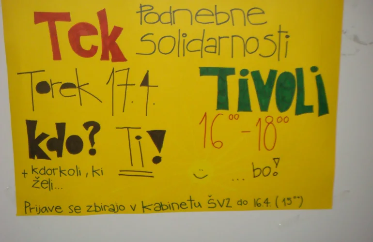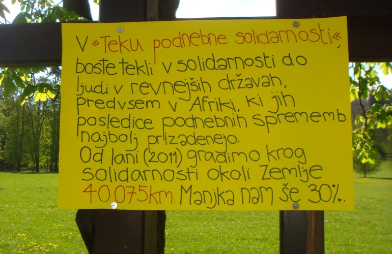 Pri razmišljanju o vseh podvigih, ki smo jih poljanci dosegli na področju teka, ne morem mimo mednarodnega humanitarnega projekta Tek podnebne solidarnosti. Pri nas ga je pod okriljem Ministrstva za zunanje zadeve vodila Slovenska Karitas. Prav »tekaška razvpitost« naše šole je bila razlog, da so nas povabili k sodelovanju .