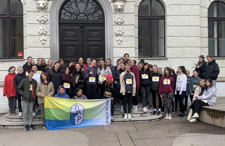Že naslednje leto se mi je na 3. Ljubljanskem maratonu pridružilo 15 dijakov, ki so se udeležili takrat 4,2 km dolgega srednješolskega teka. Sama sem se podala na 21-kilometrsko razdaljo. In potem nas je bilo vsako leto več. Leta 2000 smo se v okviru stote obletnice Gimnazije Poljane pod geslom 100 poljancev na Ljubljanski maraton udeležili 5. Ljubljanskega maratona; 30 dijakov je teklo, več kot 70 pa je pomagalo glavnemu organizatorju Timingu pri organizaciji. Od takrat naprej smo že 23 let zapored nepogrešljivi del te največje športno rekreativne tekaške prireditve pri nas. V tem času je Ljubljanski maraton doživel pravi razcvet in se uvršča med osem najbolje ocenjenih evropskih maratonov. Ponosni smo , da smo k temu uspehu majhen delček prispevali tudi mi.
