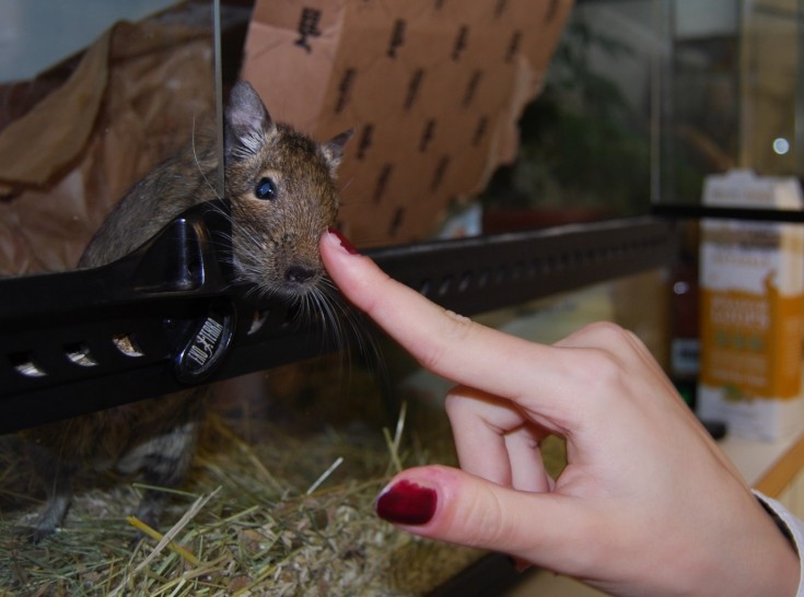 Najljubši dogodek pri živalih je bil zame takrat, ko smo se dobili enkrat v ponedeljek po pouku, vsak je imel svojo žival v rokah in smo klepetali in res je bilo fajn! Takrat sem v bistvu prvič držala pajkovko in se učila njenega gibanja ter skrbi zanjo! Tudi deguje smo vzeli ven ter jih dali v ogrado, a so kaj kmalu pogruntali, da če plezajo po tebi, lahko preskočijo ogrado, ha-ha, tako da smo večino časa pazili, da ne pobegnejo. Drugače pa nismo imeli večjih problemov, zato bomo tako druženje imeli kar vsak ponedeljek. Kdo bi si mislil, da bo eden najbolj osovraženih dni v tednu postal moj najljubši!